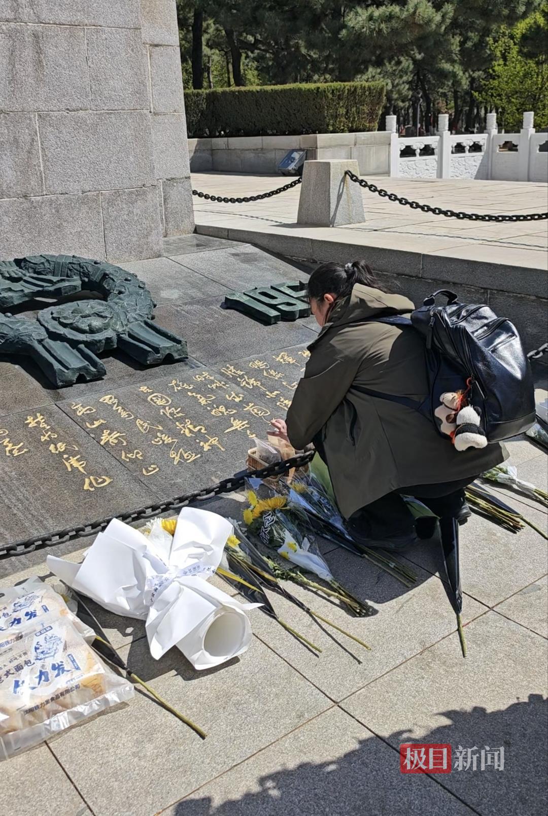 “我为烈士来寻亲”公益项目发起人孙嘉怿在纪念碑前