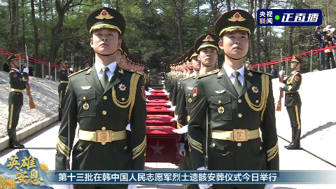 今天上午,第十三批在韩中国人民志愿军烈士遗骸安葬仪式在沈阳抗美援朝烈士陵园举行。