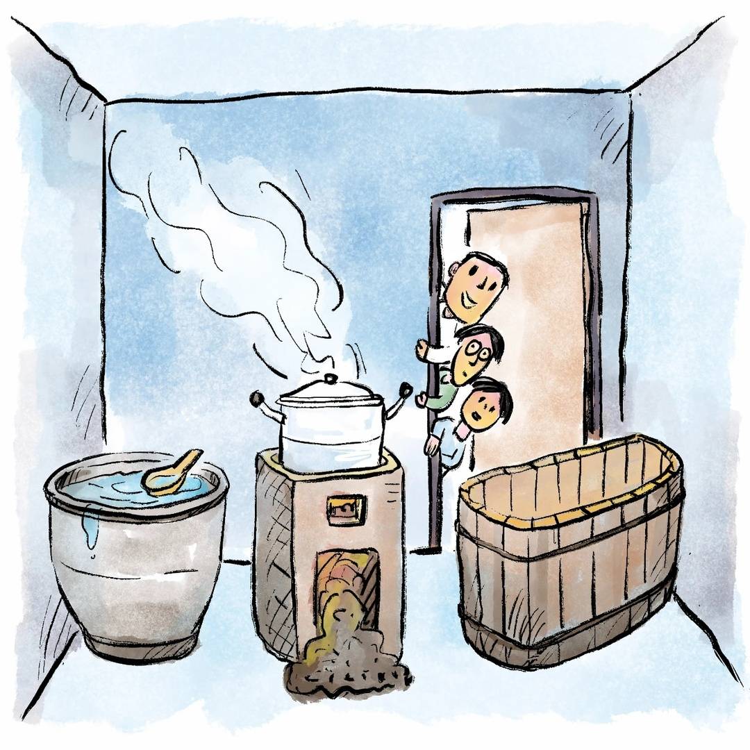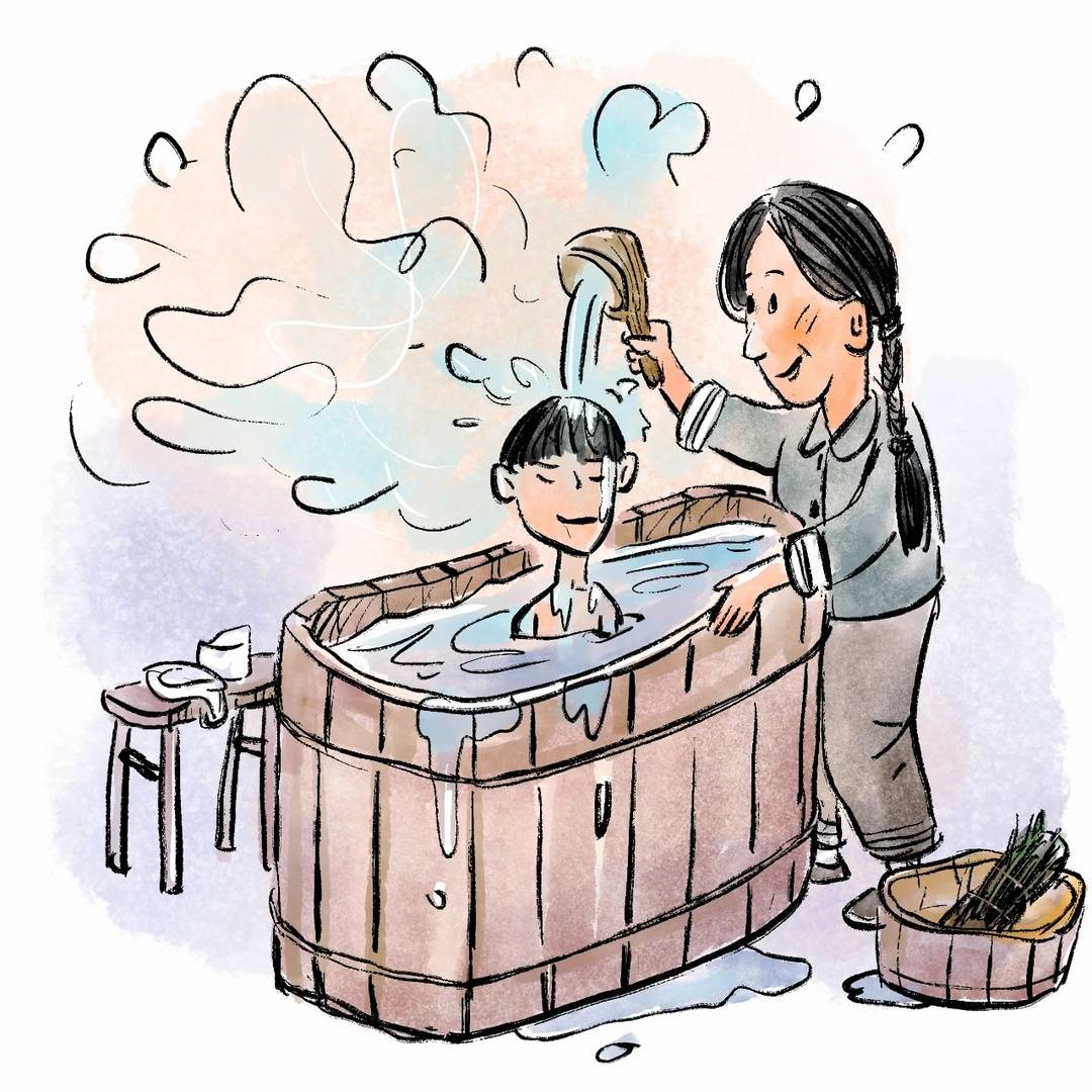 烧水时会放入一把干枯的艾草,当长辈们用带有草药味的水从头浇到腿时,虽然有点难闻,但感觉浑身特别舒服。