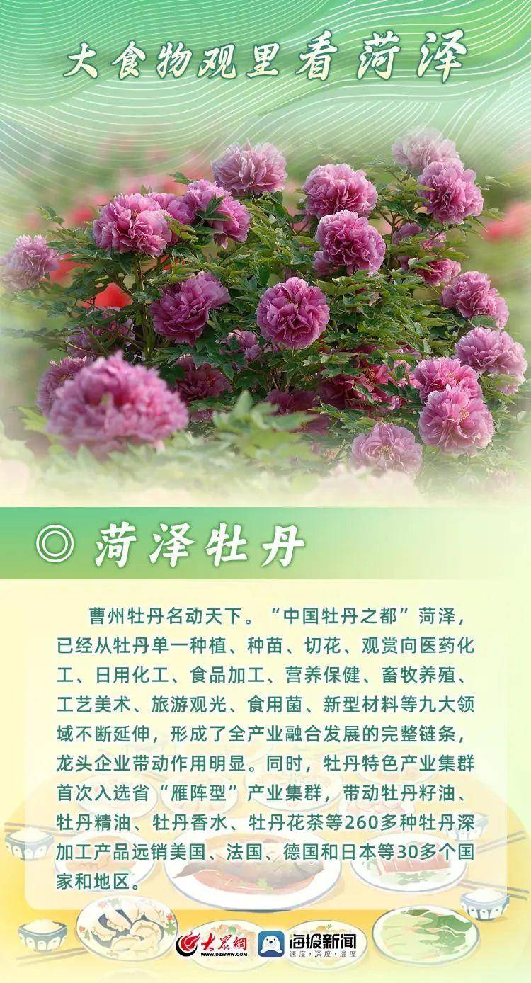 近年来,菏泽延伸产业链,积极培育优势特色产业,让农产品更“好吃”,加快乡村振兴步伐。其中,菏泽牡丹、曹县芦笋、青山羊、成武大蒜、陈集山药等一批批特色“菏”味走向全国以及全球餐桌,守护人们“舌尖”上的幸福。大食物观里看菏泽,让我们通过10张海报探寻。