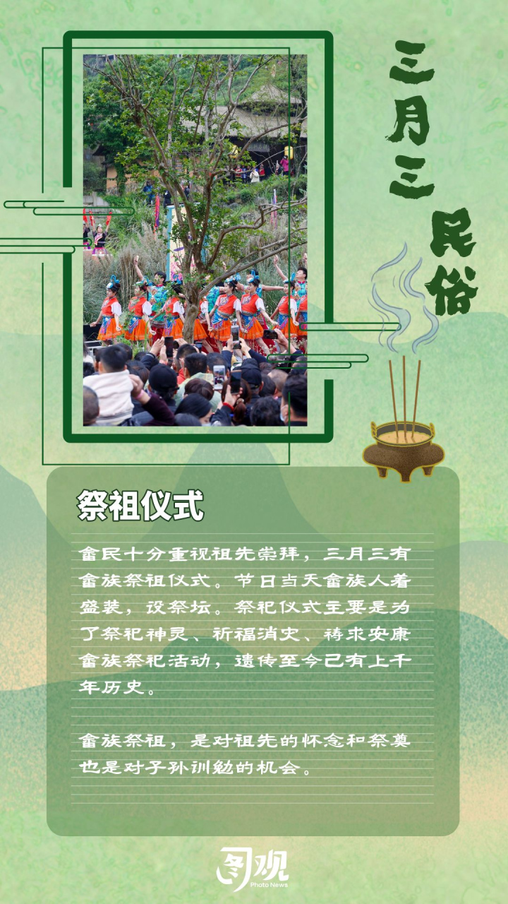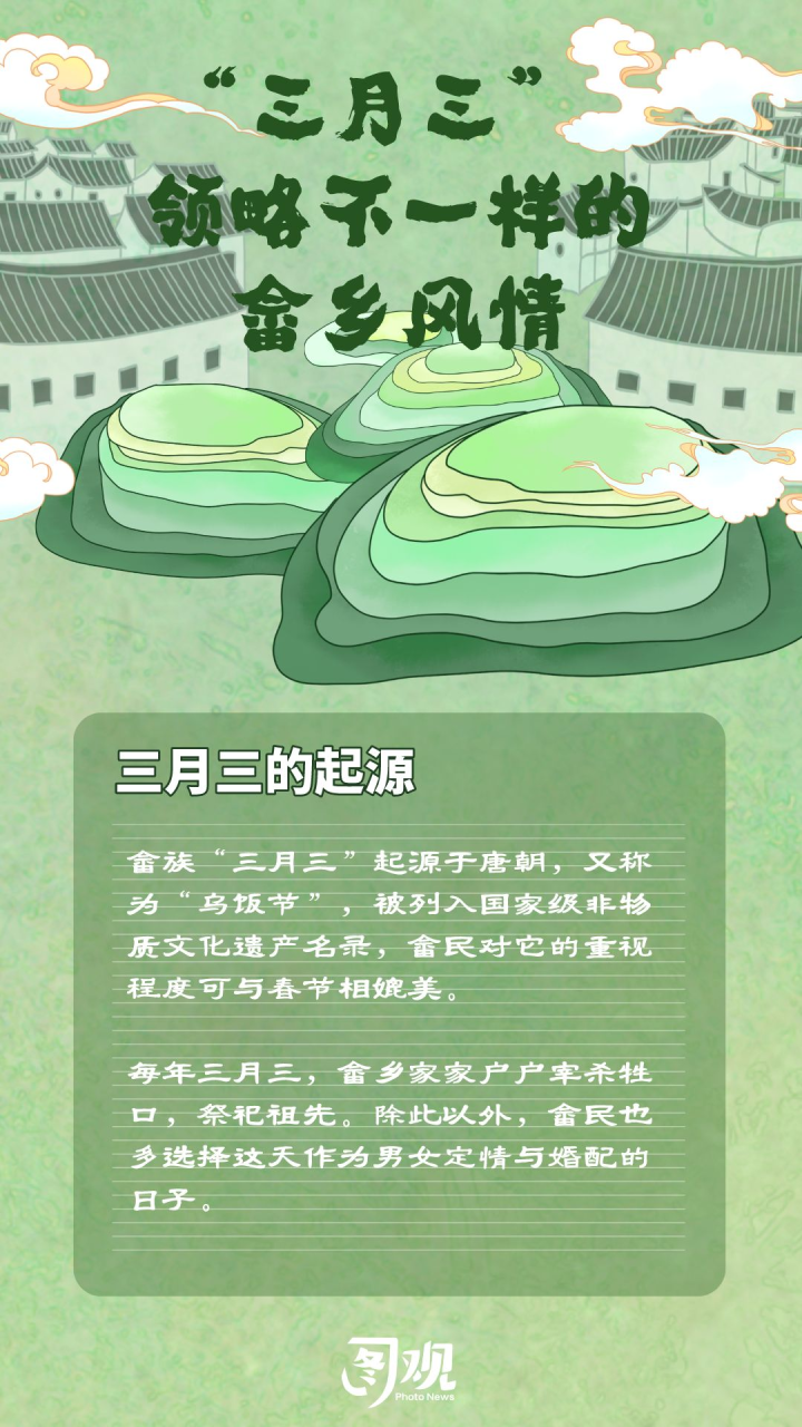 2023中国畲乡“三月三”将于4月21日至23日在景宁举行,这是近三年景宁规模最大、规格最高的民族文化活动。畲族“三月三”起源于唐朝,历经千年,世代相沿,是畲族祭祖祈福、款待宾客的传统节日,更是第二批国家非物质文化遗产,成为景宁畲族文化的一张金名片。一起来看看畲乡“三月三”都有哪些风俗习惯。