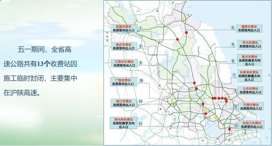 五一期间,江苏省高速公路有13个收费站将临时封闭。