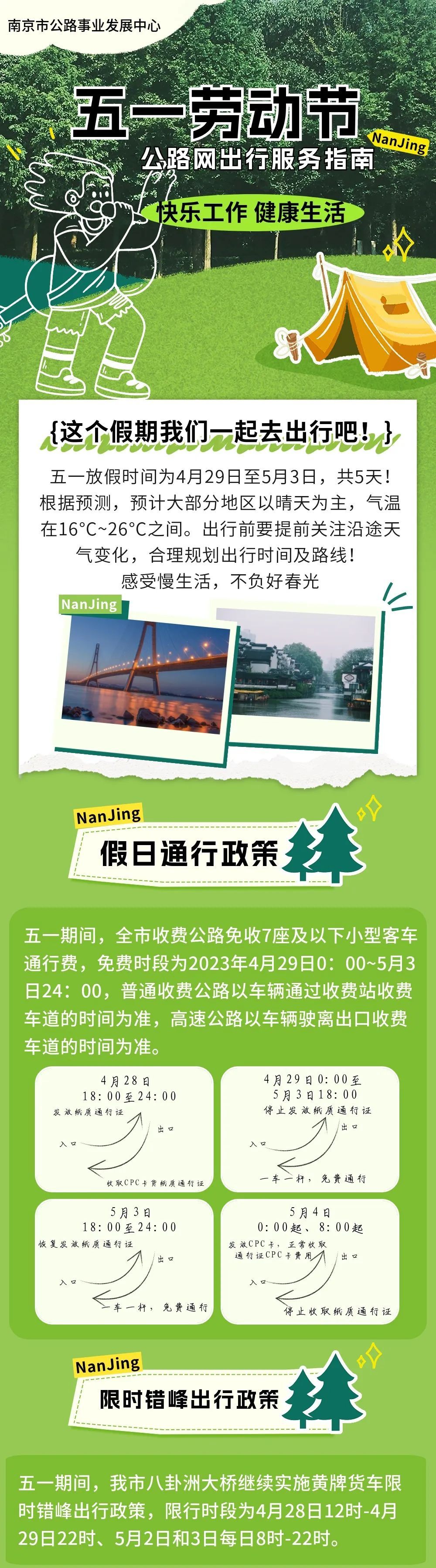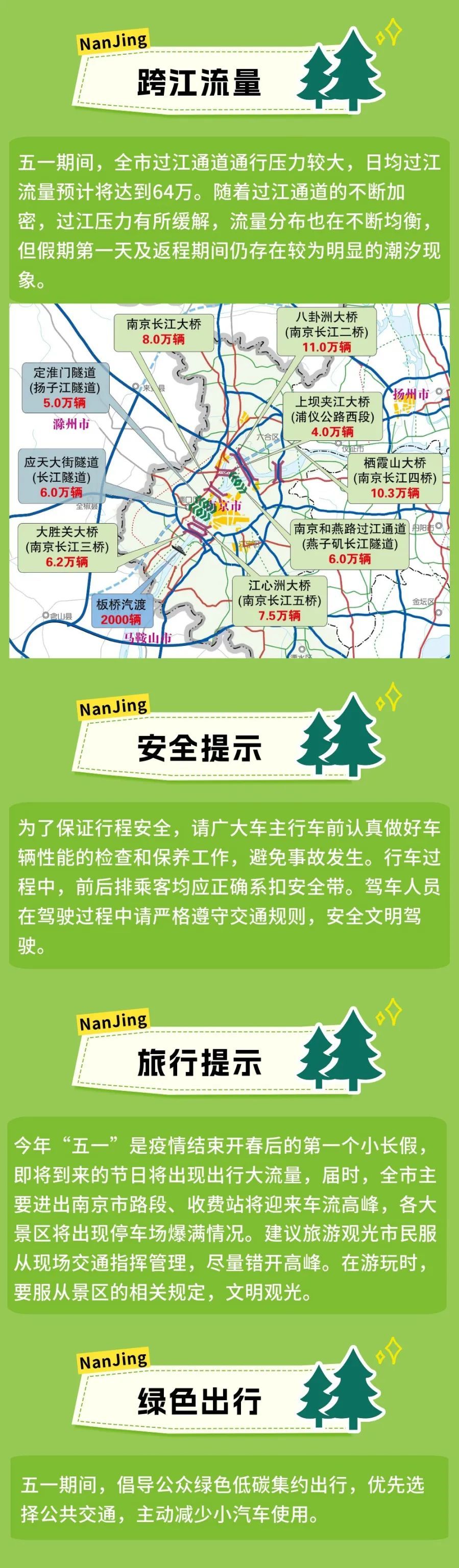 大皖新闻讯 据南京发布公众号消息 五一假期即将迎来出行大流量,请大家动态关注路况信息,合理安排出行计划。哪些路段易拥堵?哪些路段临时限行?南京市公路事业发展中心发布“五一”劳动节公路网出行服务指南,计划出游南京的朋友请收好啦。