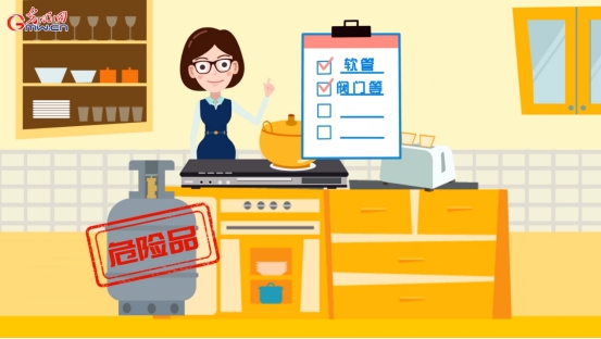 厨房内的燃气灶具,要定期检查,更换软管等配件。禁止违规使用液化气瓶。