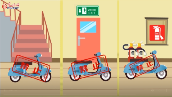 电瓶车禁止停放在楼梯间、安全出口、疏散通道。