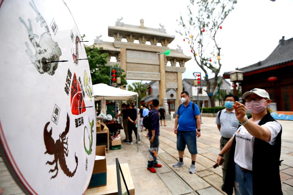 2020年6月25日,在山东青岛市即墨古城,游客体验射五毒。新华社发(梁孝鹏摄)
