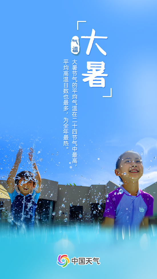 “大者,乃炎热之极也。”大暑是夏季最后一个节气,也是全年最热的节气。大暑节气的平均气温在二十四节气中最高,平均高温日数最多,极端高温出现次数也最多,是名副其实的“炎热冠军”。