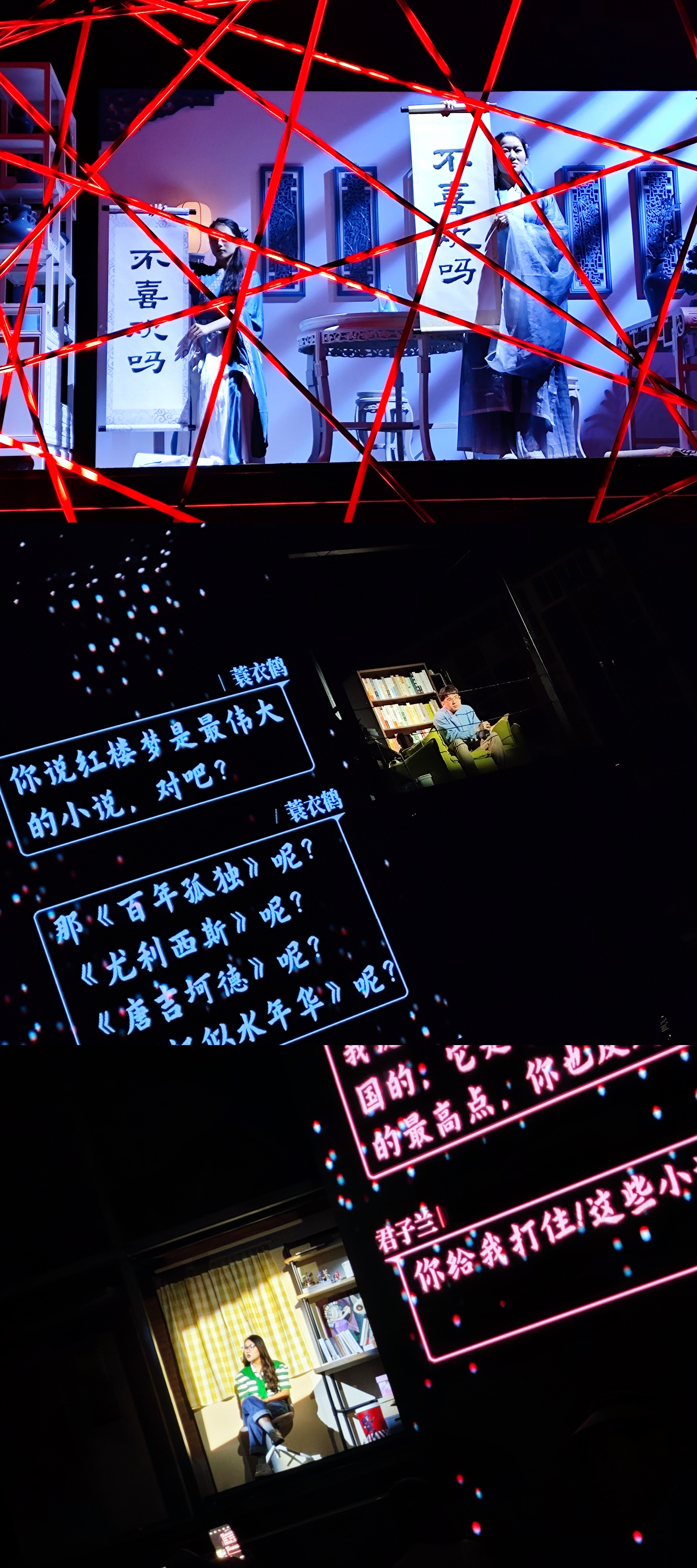 关于戏剧幻城目前排演的剧目,如上所述,首期共有4个大型室内剧场,8个小型室内剧场。四个大型剧场中,《第三十五中》是一个沉浸式的剧目,观众作为学生回到高中时代,《红楼梦》将作为一个元素点缀其中。而《读者剧场》《有还无》《书不尽》都是以《红楼梦》为主题衍生的剧目。《读者剧场》共有三个场景,演员们还原了《红楼梦》中的关键桥段,讲大观园的被抄检、讲王熙凤的命运等等;《有还无》聚焦金陵十二钗的命运。