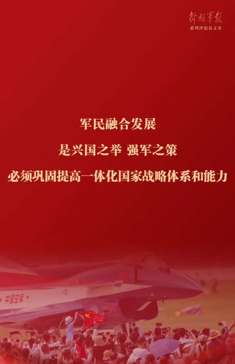 “军民融合发展是兴国之举、强军之策,必须巩固提高一体化国家战略体系和能力”。习近平强军思想这一重要内涵,深刻回答了强军兴军的重要依托这个重大问题。