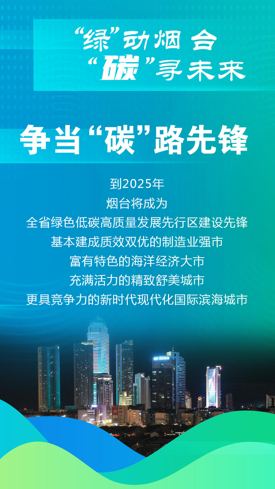 2023绿色低碳高质量发展大会将于8月28日至30日在烟台举办。争当“碳”路先锋,抢跑“双碳”赛道。壹点海报带你了解烟台在推动绿碳园区建设,提升科技创新能力,推进产业转型升级,建设美丽城市方面的目标和所做的努力。