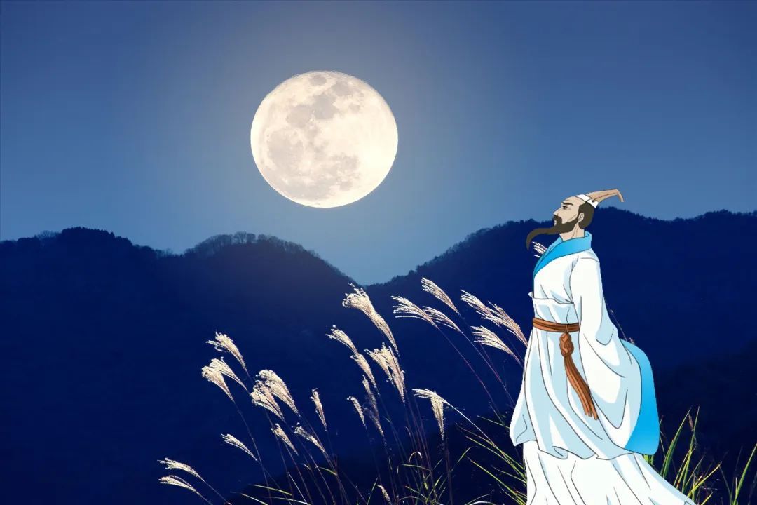 译文:月亮得到了什么神药,竟能亏朔死了又再盈满重生?月中黑影里是何物,是否兔子其中藏身?
