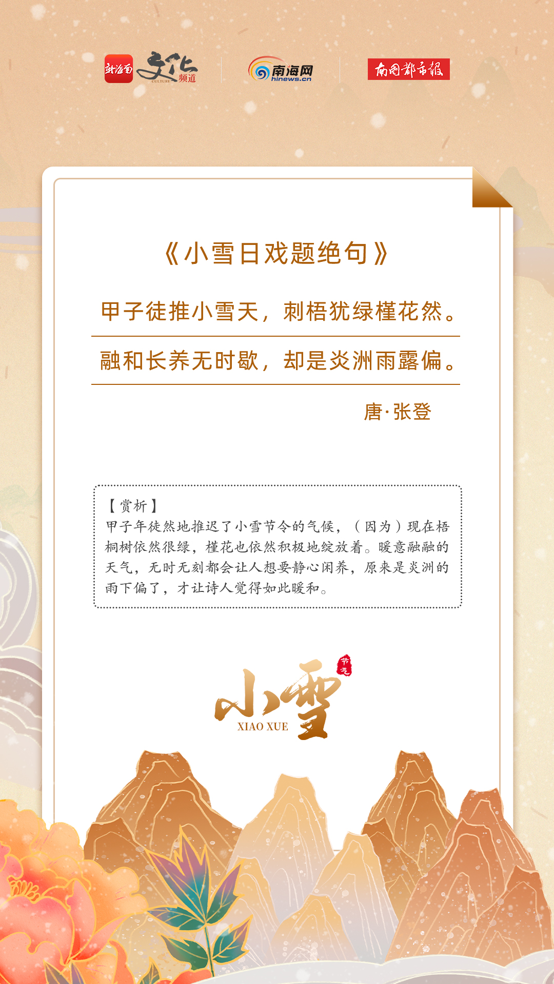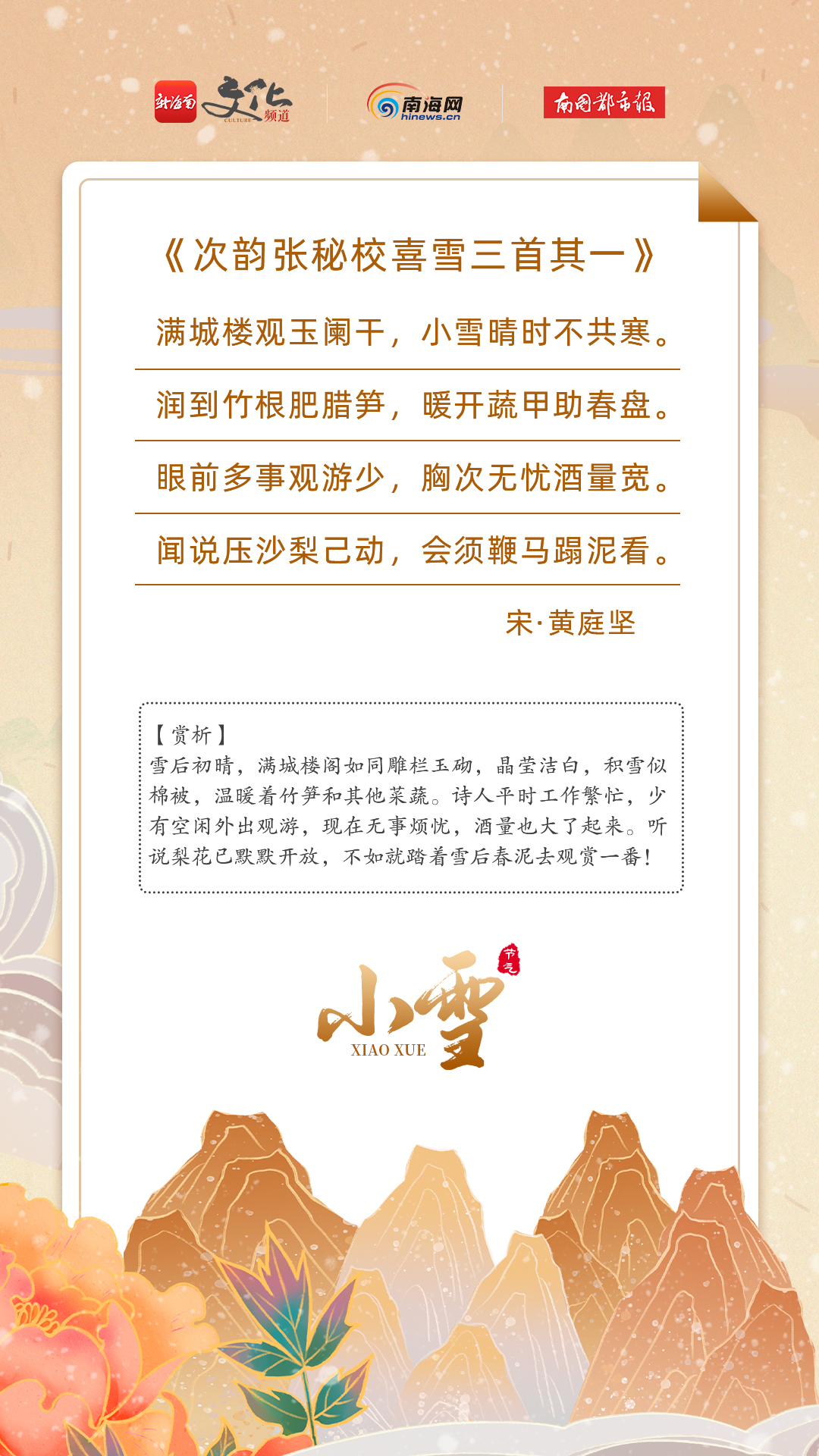 今日迎来小雪节气,早晚空气中寒意渐重,南方还是色彩斑驳的深秋,而北方的初雪已开始飘落。