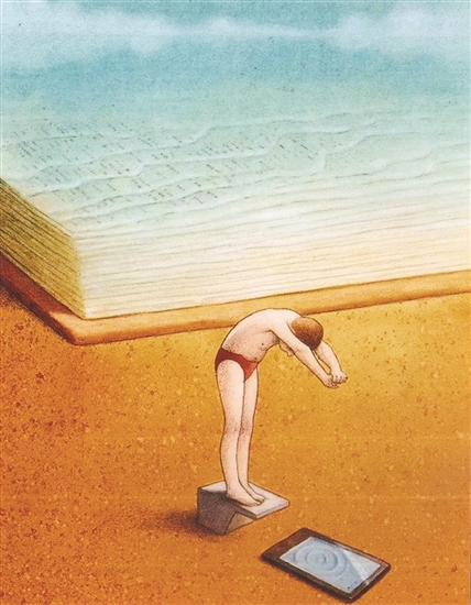 在知识的海洋面前,你有怎样的打算?如何搏击?别像这位老兄,知难而退,在艰辛的苦读时装装样子。