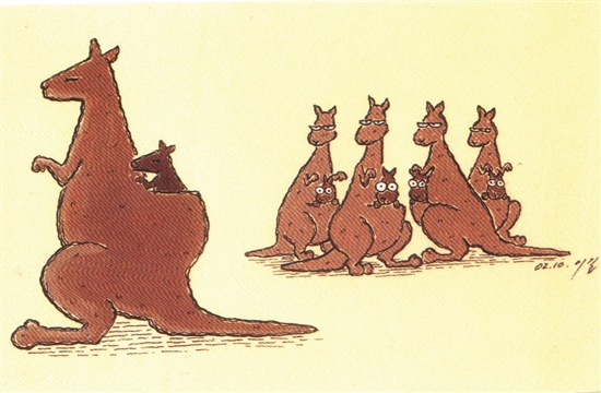 育儿袋长在背后的袋鼠被看作异类,其他母亲对它嗤之以鼻,在鄙视中坚强生活并将孩子培养成才的“异类”终被赞扬。