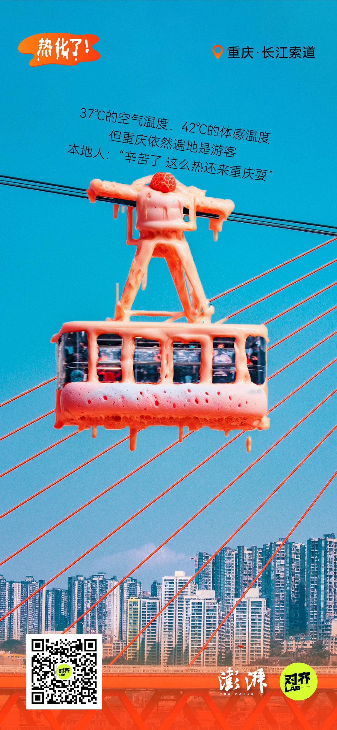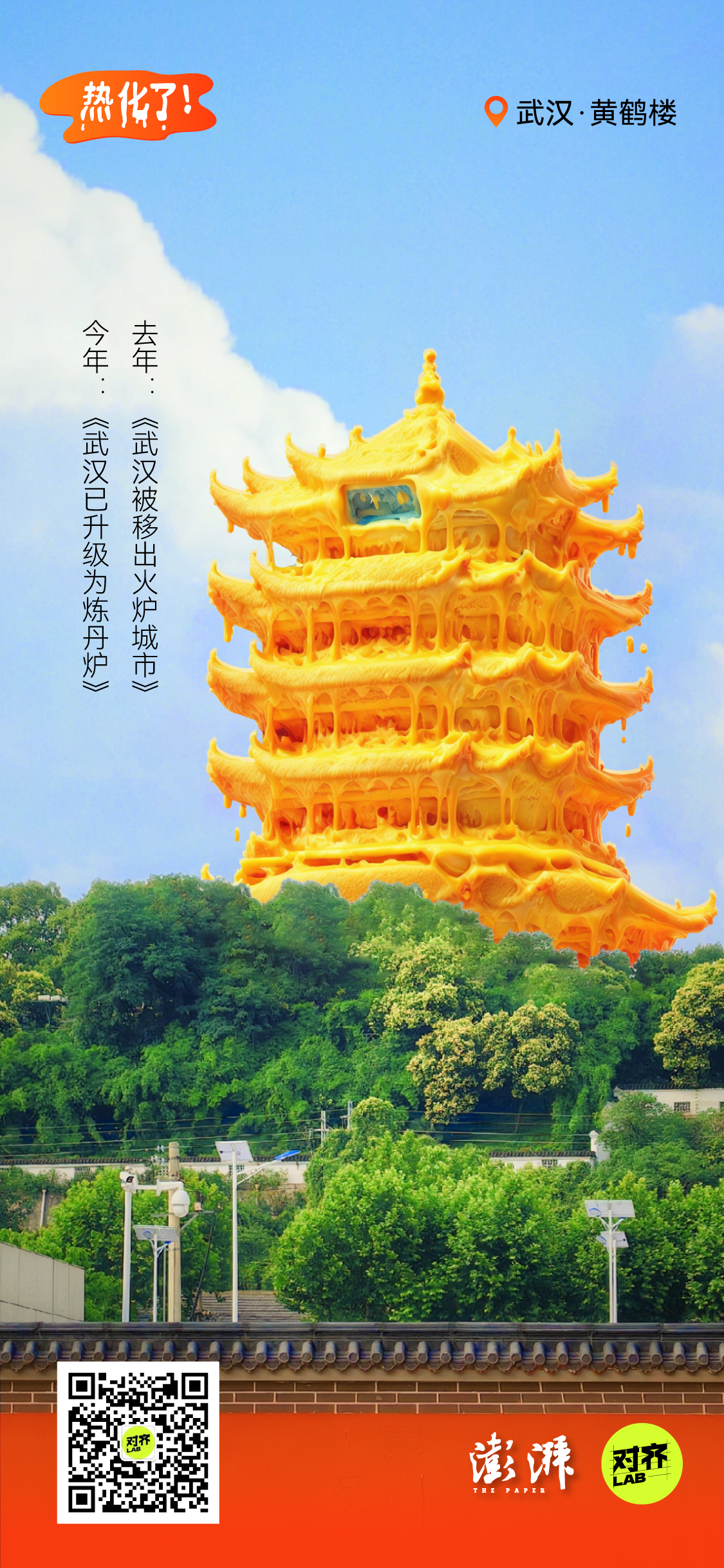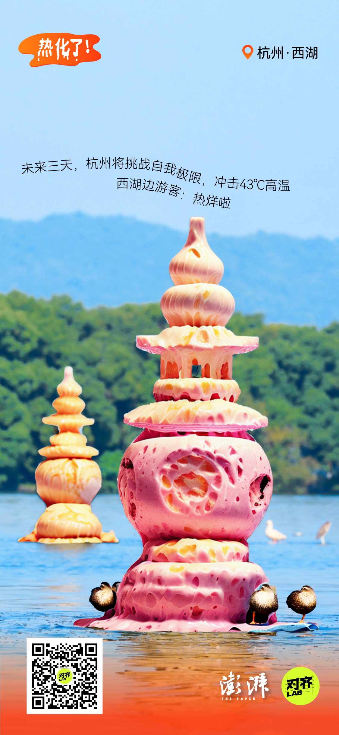 为了让高温具象化,我们借助AI,将城市地标做成了正在融化的雪糕: