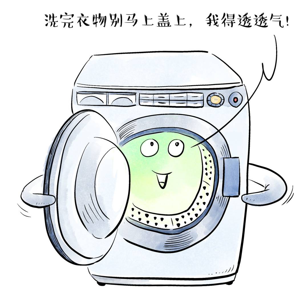 洗衣机结束工作之后,内部其实还是潮湿的,有些洗衣机有加热功能,如果立刻关上盖子,无疑会让微生物在内部大批量繁殖,污染新放进去的衣服。最好的做法,是洗完衣服之后,打开盖子,让内部自然风干。