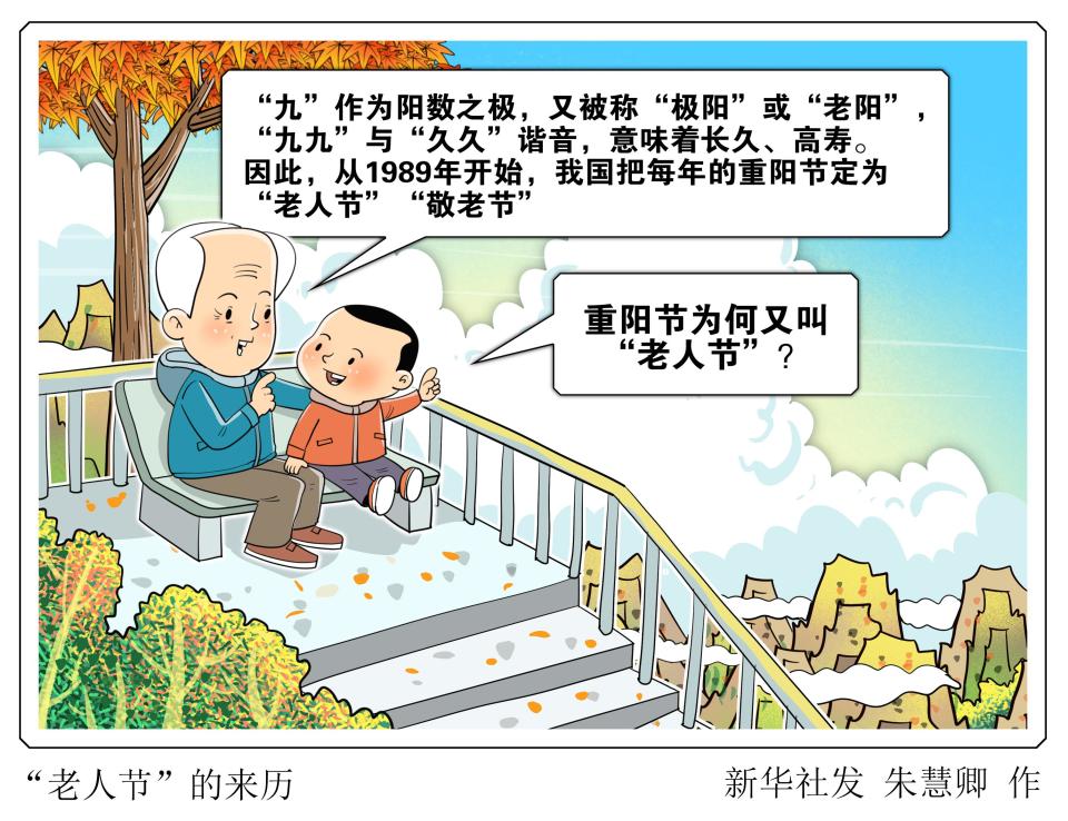 农历九月初九,为中国传统节日重阳节。社会学家介绍,古人以“九”为阳数,日月逢九,两阳相重,名曰“重阳”,又称“重九”“双九”,或“九九重阳”。“九”作为阳数之极,又被称“极阳”或“老阳”,“九九”与“久久”谐音,意味着长久、高寿。因此,从1989年开始,我国把每年的重阳节定为“老人节”“敬老节”。