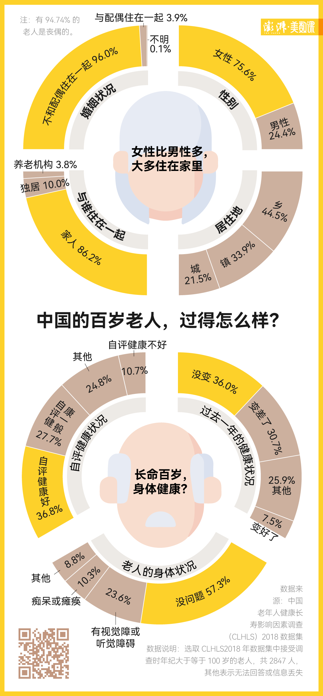 可怎样才能“长命百岁”呢?中国老年健康影响因素跟踪调查(下简称其英文缩写CLHLS)是由北京大学健康老龄与发展研究中心/国家发展研究院组织的老年人追踪调查,始于1998年,是国内全国范围最早、坚持时间最长的社会科学调查。澎湃美数课综合CLHLS数据和研究“长寿老人”的论文,去寻找那颗长生不老的仙丹。