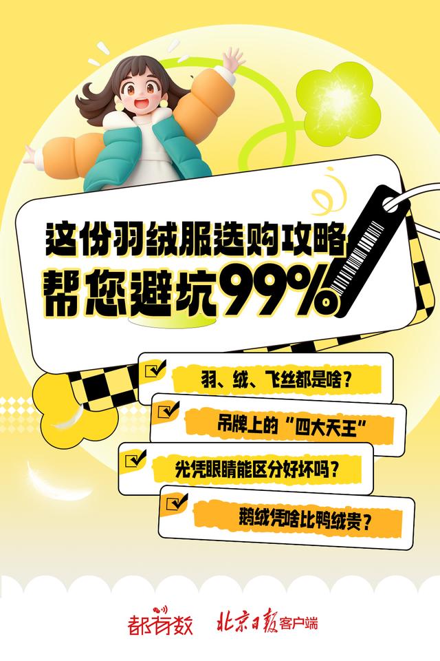 当前正值羽绒服选购季,部分商家以丝代绒、炒作概念等乱象引发关注,不少消费者感叹:“只是想买件合格的羽绒服,怎么就那么难?”实际上,只要了解最关键的概念与指标,就能在羽绒服选购中避免绝大多数消费陷阱。这份选购攻略请您收好——