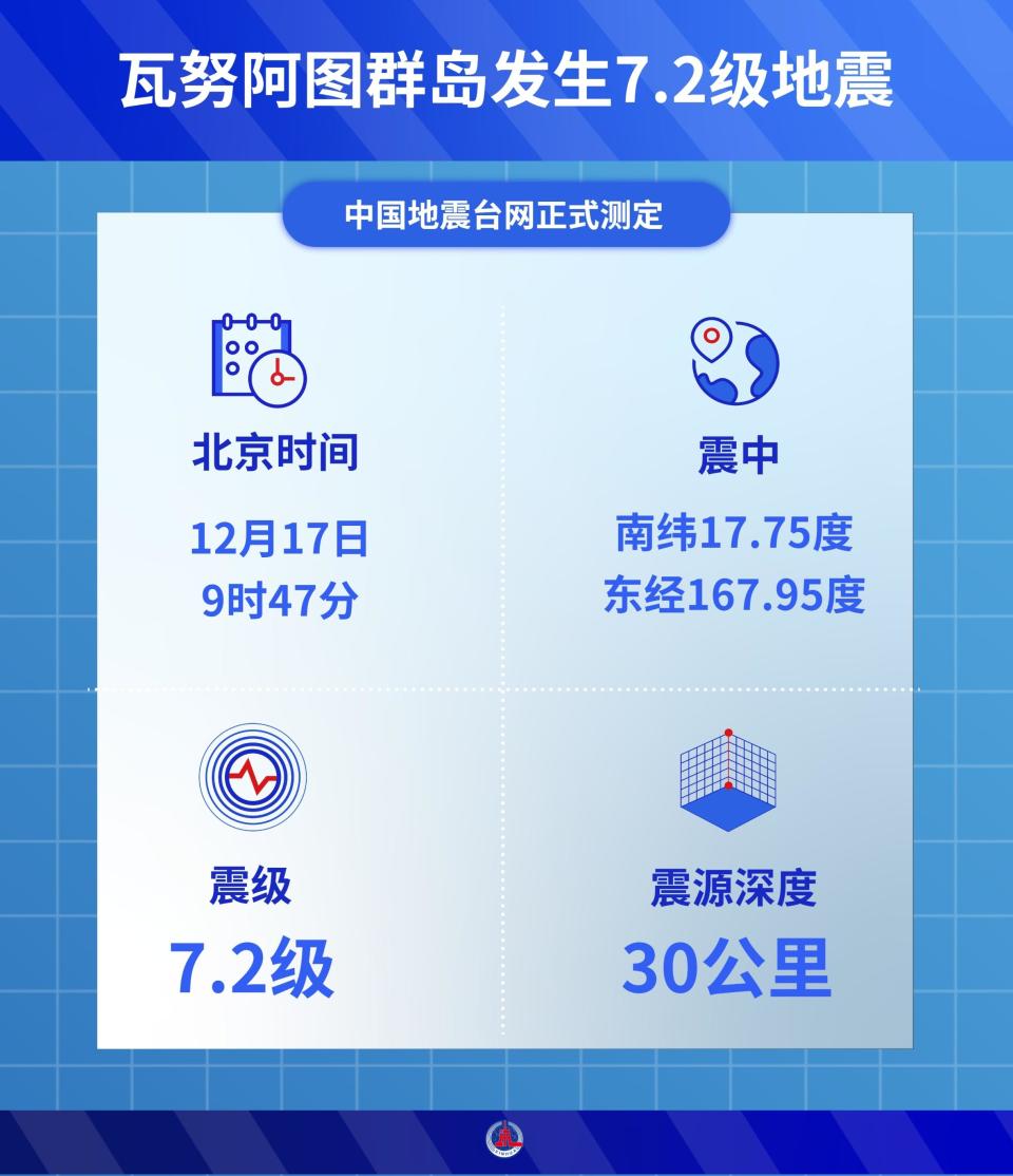 瓦努阿图群岛发生7.2级地震