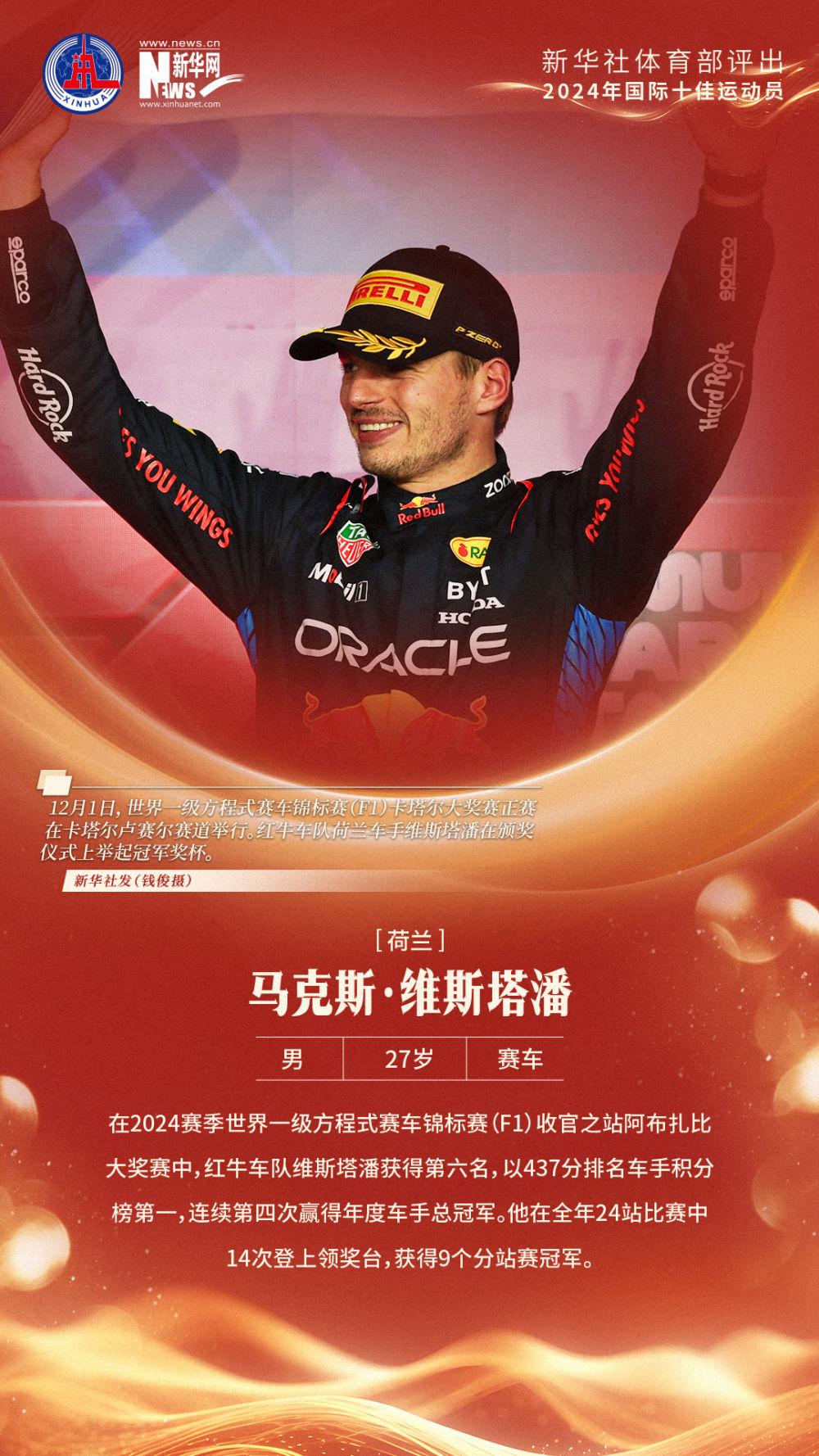 1、马克斯·维斯塔潘(荷兰,男,27岁,赛车)