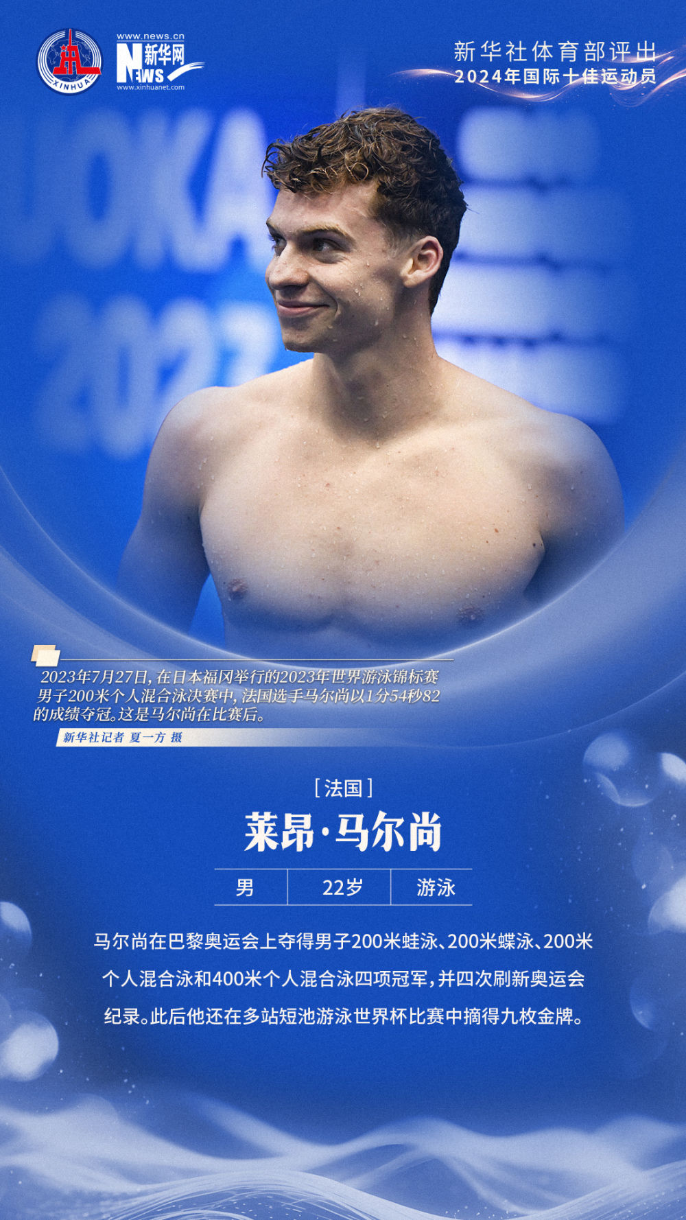 9、莱昂·马尔尚(法国,男,22岁,游泳)