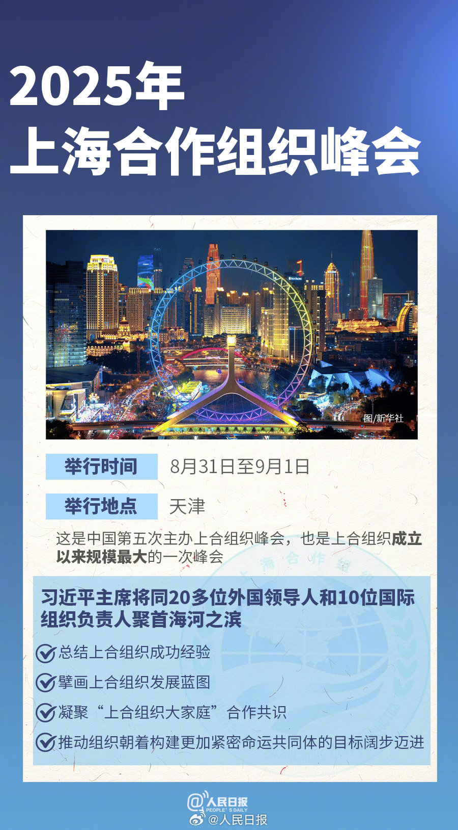 8月31日至9月1日,2025年上海合作组织峰会将在天津举行。