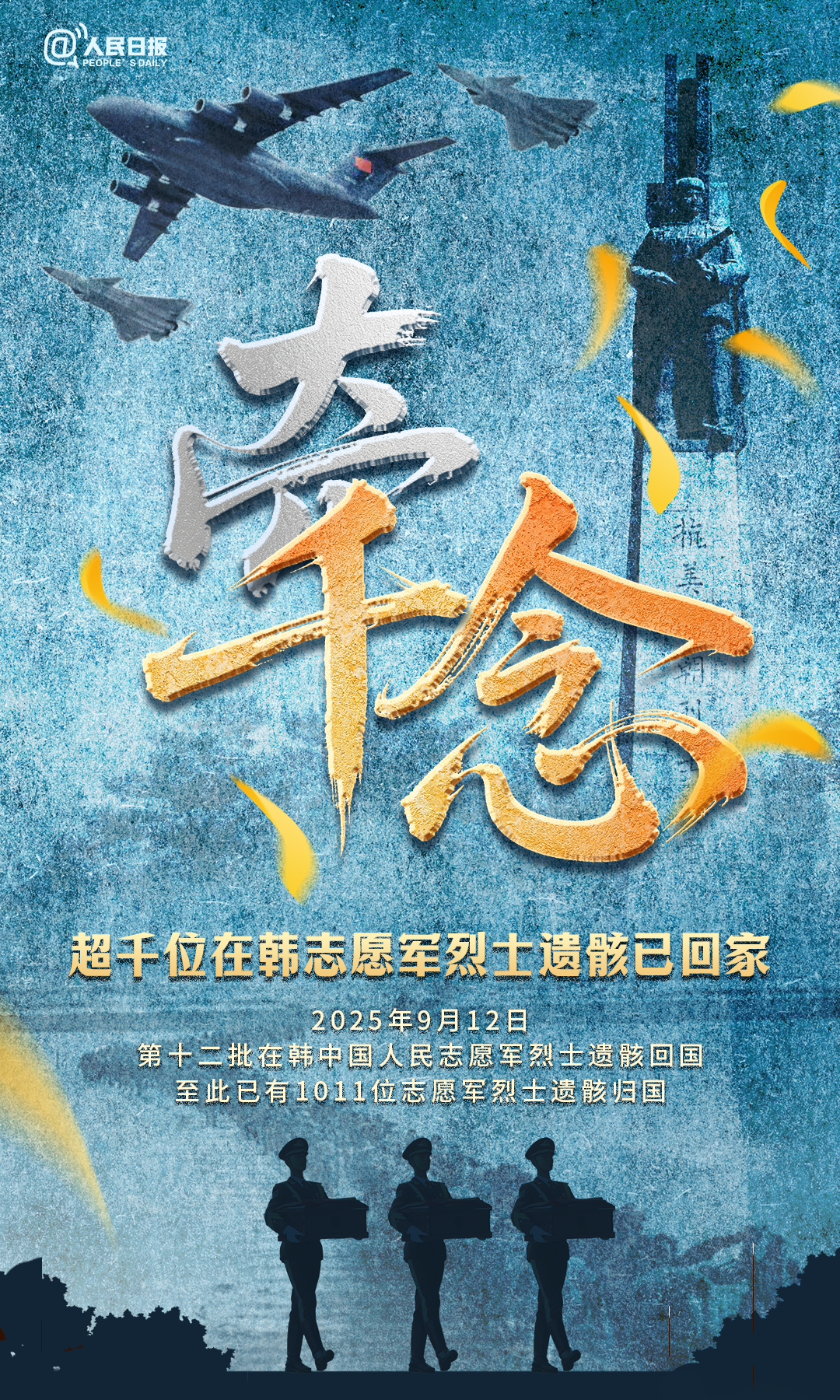 9月12日上午,搭载30位在韩中国人民志愿军烈士遗骸的运-20进入我国领空。空军4架歼-20伴飞护航。至此,已有1011位志愿军烈士遗骸归国。