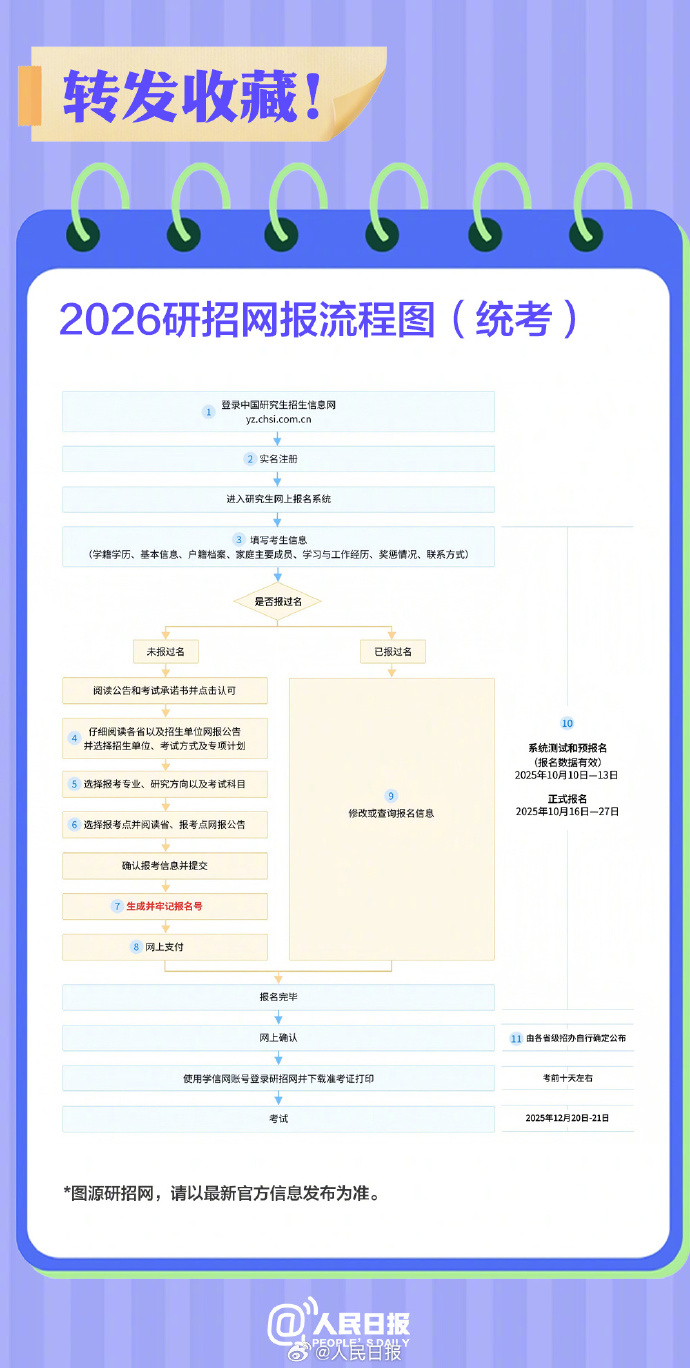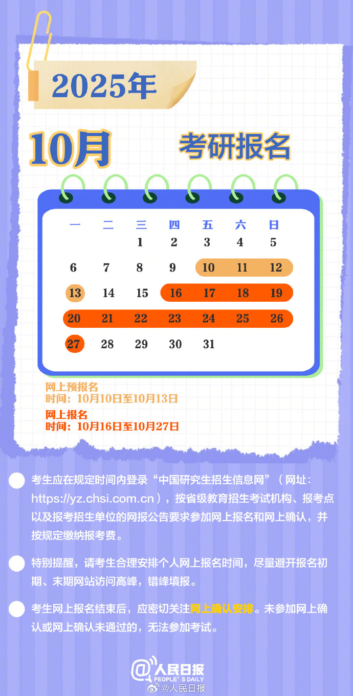 10月10日到13日,考生可登录“中国研究生招生信息网”,进行研招统考网上预报名。后续还有哪些重要时间节点需关注?转存,2026考研全流程时间节点↓↓