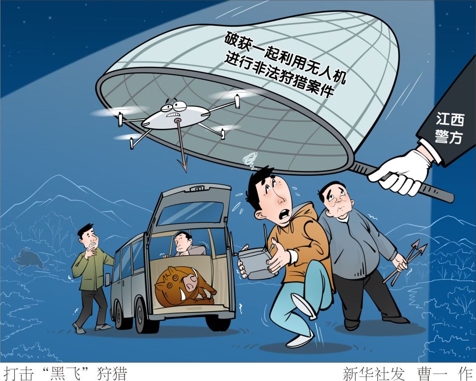 今年9月,江西省德兴市警方近期破获一起利用无人机进行非法狩猎案件。当地警方表示,“黑飞”狩猎已成为具有普遍性的安全隐患,热成像仪在夜间仅能识别目标轮廓,无法准确辨别人与动物,可能误伤村民、护林员等人员。类似的“黑飞”狩猎存在安全隐患,此类案件在全国多地均有发生。个案背后,一条借助网络平台的灰色产业链正在暗中滋生。面对无人机“黑飞”问题,一些地方公安部门也在积极探索应对之策。