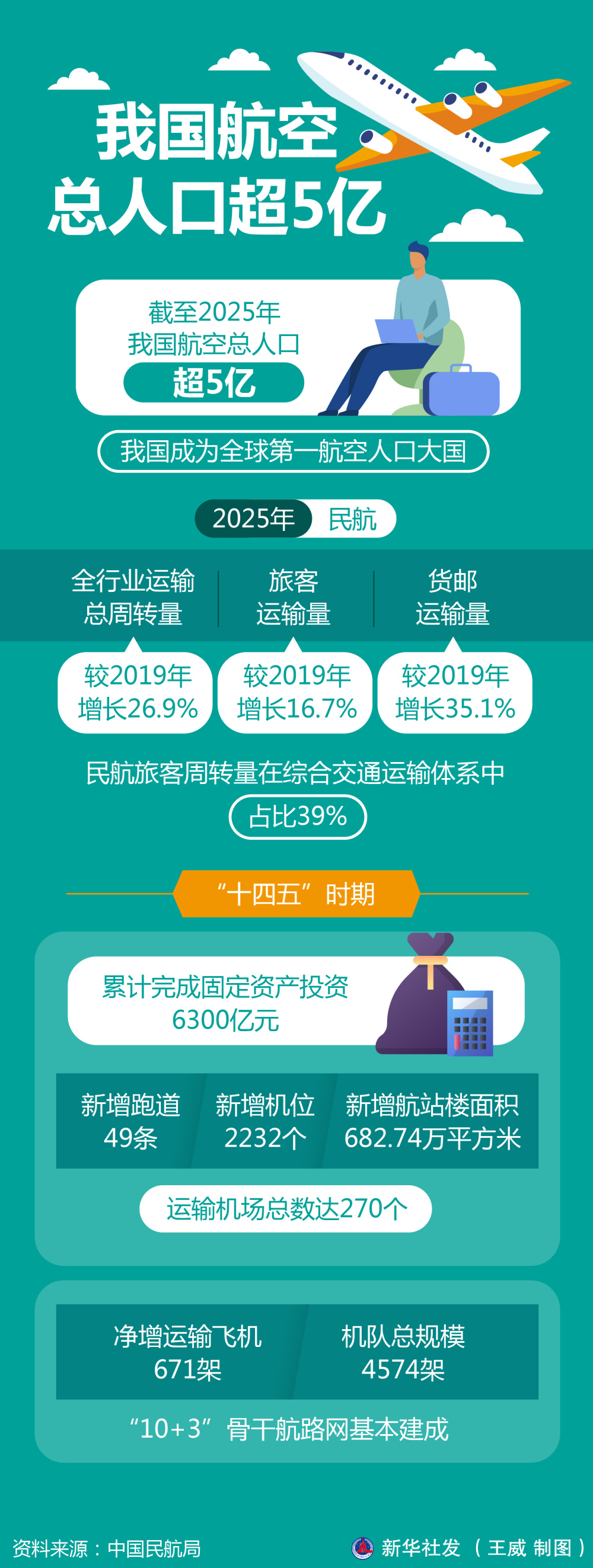 中国民航局局长宋志勇表示,截至2025年,我国航空总人口超5亿,我国成为全球第一航空人口大国。