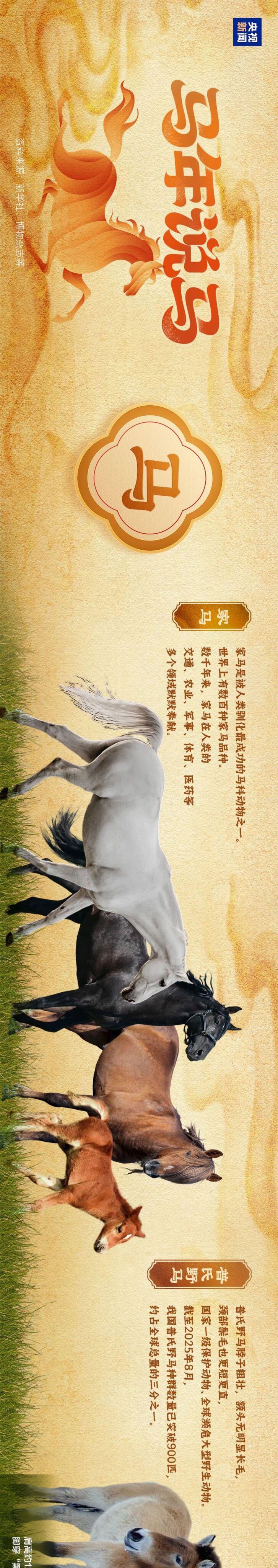 农历马年即将到来。马,已与人类相伴数千年,它曾拉动文明前行的车轮,也曾在沙场上冲锋陷阵、纵横驰骋。家马品种多达数百种,但放眼整个动物界,马的“族谱”并不算兴旺。马属的物种大致可分为三类——马、驴和斑马。它们之中,有的成为人类的重要伙伴,有的则选择栖息于荒漠、高原或草原,至今保持着野性与自由。今天,一起来了解它们。