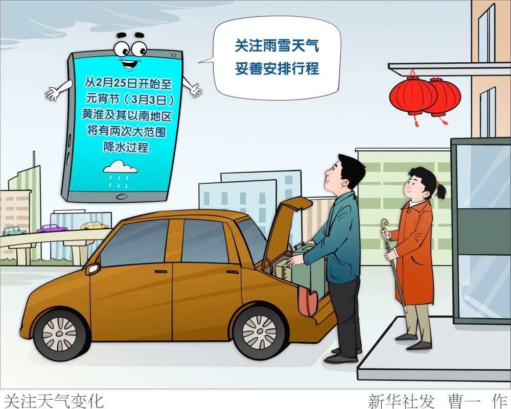 中央气象台2月24日预报,从2月25日开始至元宵节(3月3日),黄淮及其以南地区将有两次大范围降水过程,江南、华南等地部分地区雨势较强。