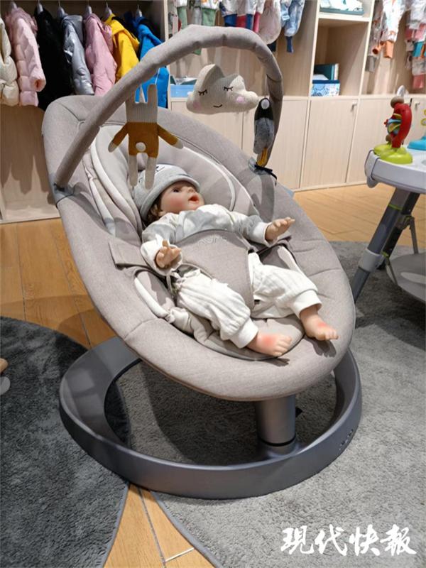 10月25日,现代快报记者探访了南京多家售卖母婴用品的商店,发现婴儿摇椅并不常见。在建邺区的一家母婴店中,店员表示,摇摇椅也称为安抚椅,但门店中没有现货。如果消费者确实需要,可以通过线上商城购买。