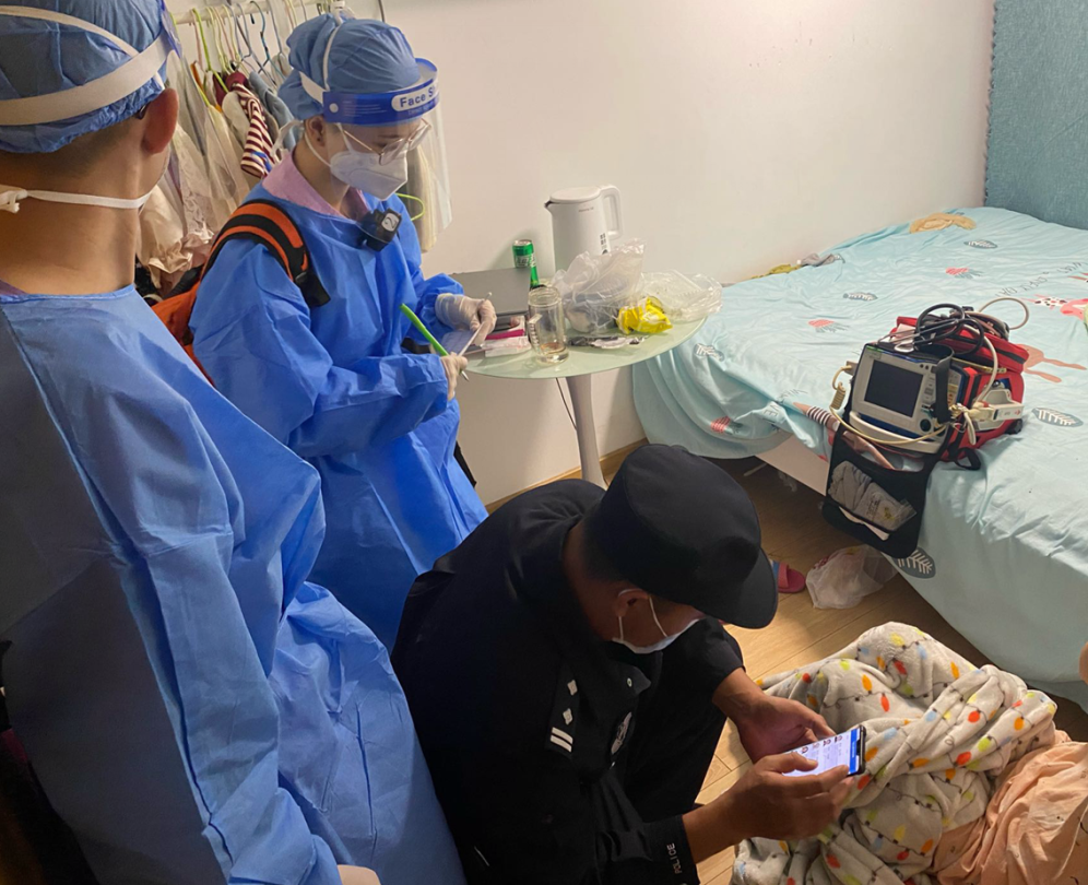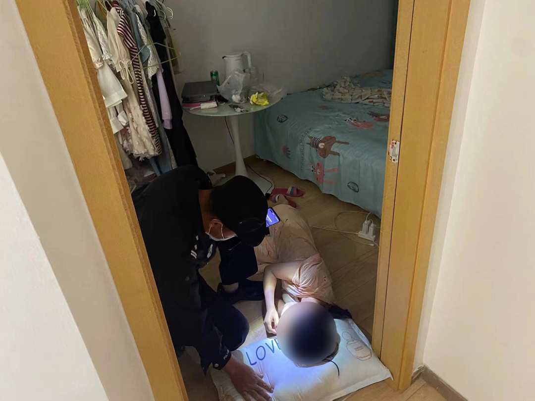 民警梁汝佳察觉情况有异,迅速上报单位并找工具破门。破门而入后,梁汝佳发现女子已晕倒在二楼卧室的地上,脉搏微弱、身体冰凉,判断可能是低血糖引起。