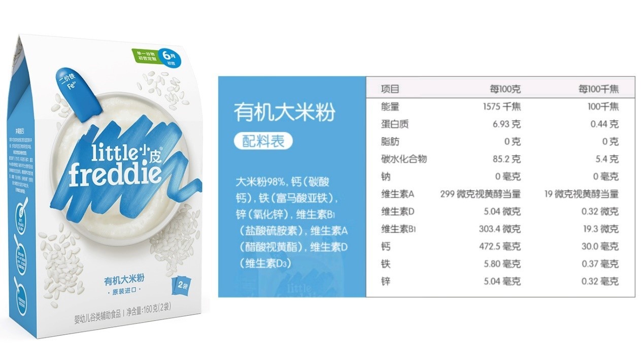 △LittleFreddie(小皮)有机大米粉配料表及营养成分表
