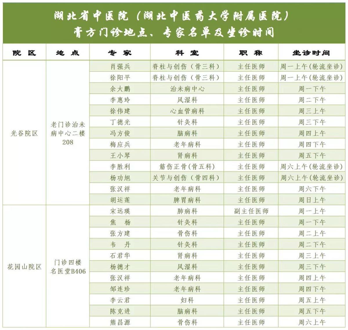 膏方门诊专家名单及坐诊时间