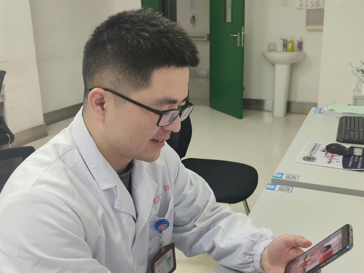 刘坤医生在进行视频回访 (通讯员方婷 摄)