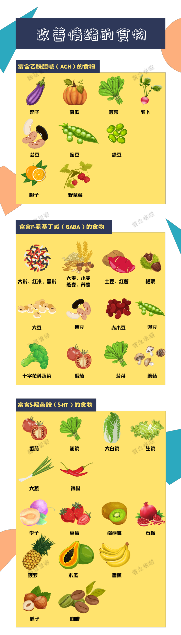 专家们认为,冬季旺盛的食欲还与季节性情绪失调(SAD)相关,这是一种季节性发生的焦虑抑郁症状,会出现碳水食物渴求、暴饮暴食等一系列饮食行为改变,进而造成体重失控。食物中的乙酰胆碱(Ach)、γ-氨基丁酸(GABA),以及5-羟色氨(5-HT)等神经递质成分,能够对这些异常情绪有较好的改善作用。