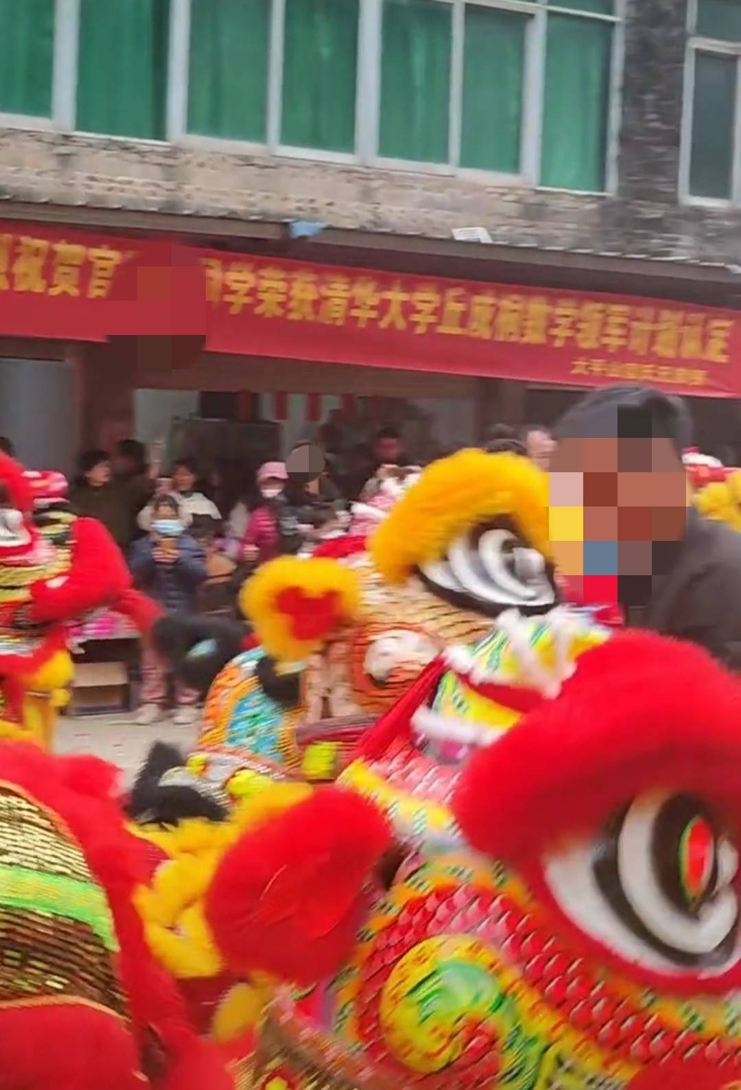 在官同学的老家博白县浪平镇,乡亲们于1月27日为他举办了庆祝活动。多个村民发布的视频显示,和睦小学周边的道路上挂着彩带,挤满了敲锣打鼓、举着祝贺横幅的人群,还有多人在现场表演舞狮,视频中的横幅上写着“热烈祝贺官同学荣登清华大学数学领军人才培养计划”。