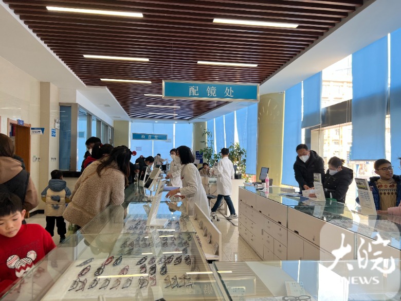 2月1日上午,记者在安医大一附院眼视光中心候诊区看到,不时有试戴眼镜的孩子走来走去,验光配镜的医护人员忙得不可开交。一位家长告诉记者,快要开学了,她一大早就带孩子赶过来复查视力,没想到人那么多。
