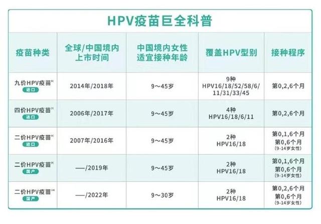 九价HPV疫苗,用于预防人乳头瘤病毒(HPV)感染引起的宫颈癌。2018年4月,国家药品监督管理局有条件批准用于预防宫颈癌的九价HPV疫苗在中国上市。2022年8月,我国批准上市的九价HPV疫苗,其接种适应年龄范围是9至45岁适龄女性。