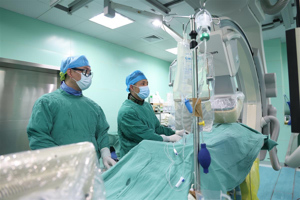心血管内科周逸主任医师为患者进行介入手术(武汉市中心医院供图)