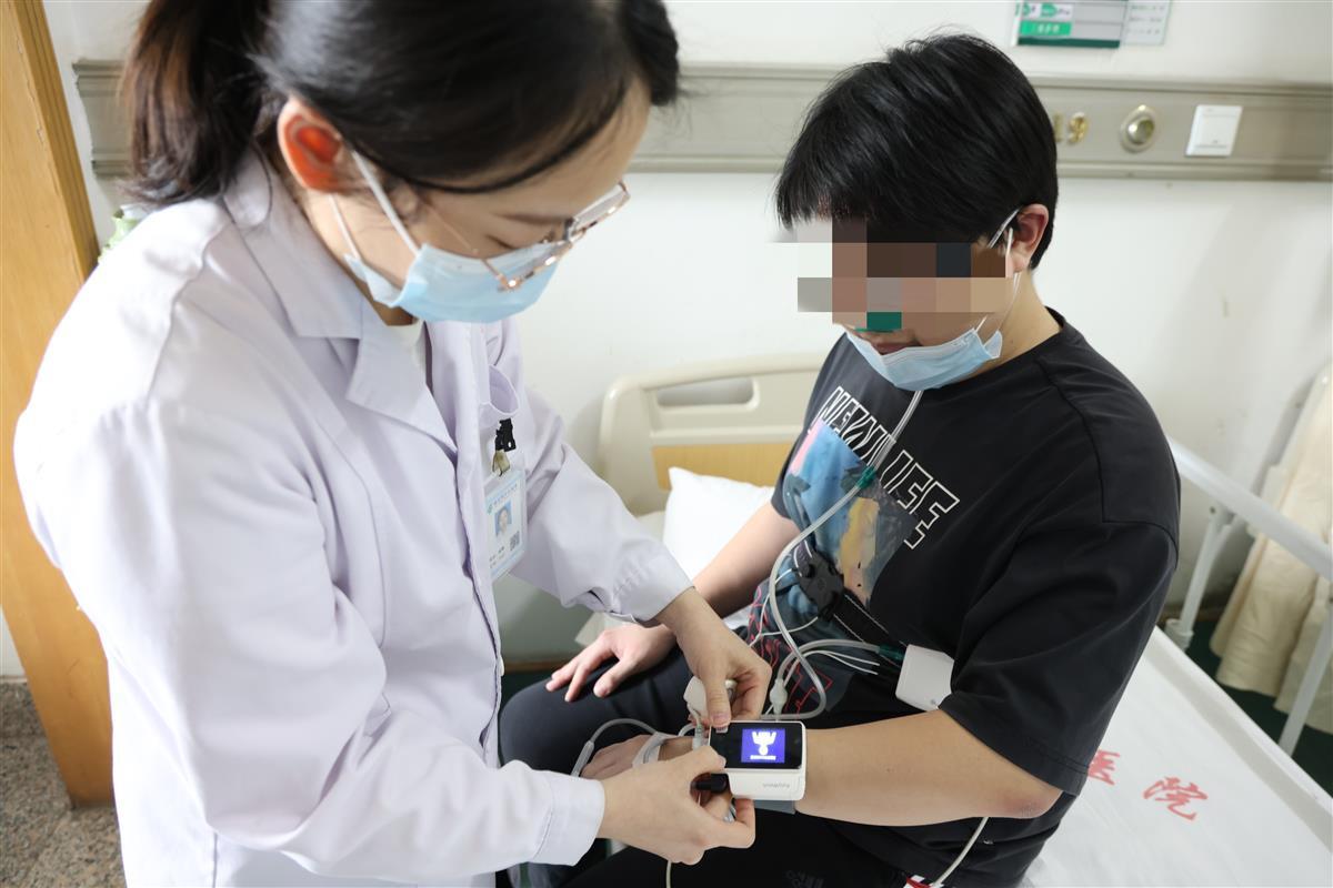 睡眠医学中心团队的医生服务到床边,为住院患者进行睡眠监测