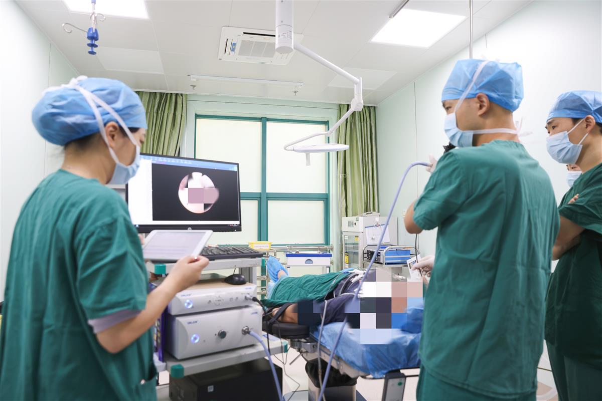 耳鼻喉科医生谭健为患者进行药物诱导睡眠上气道动态内镜检查