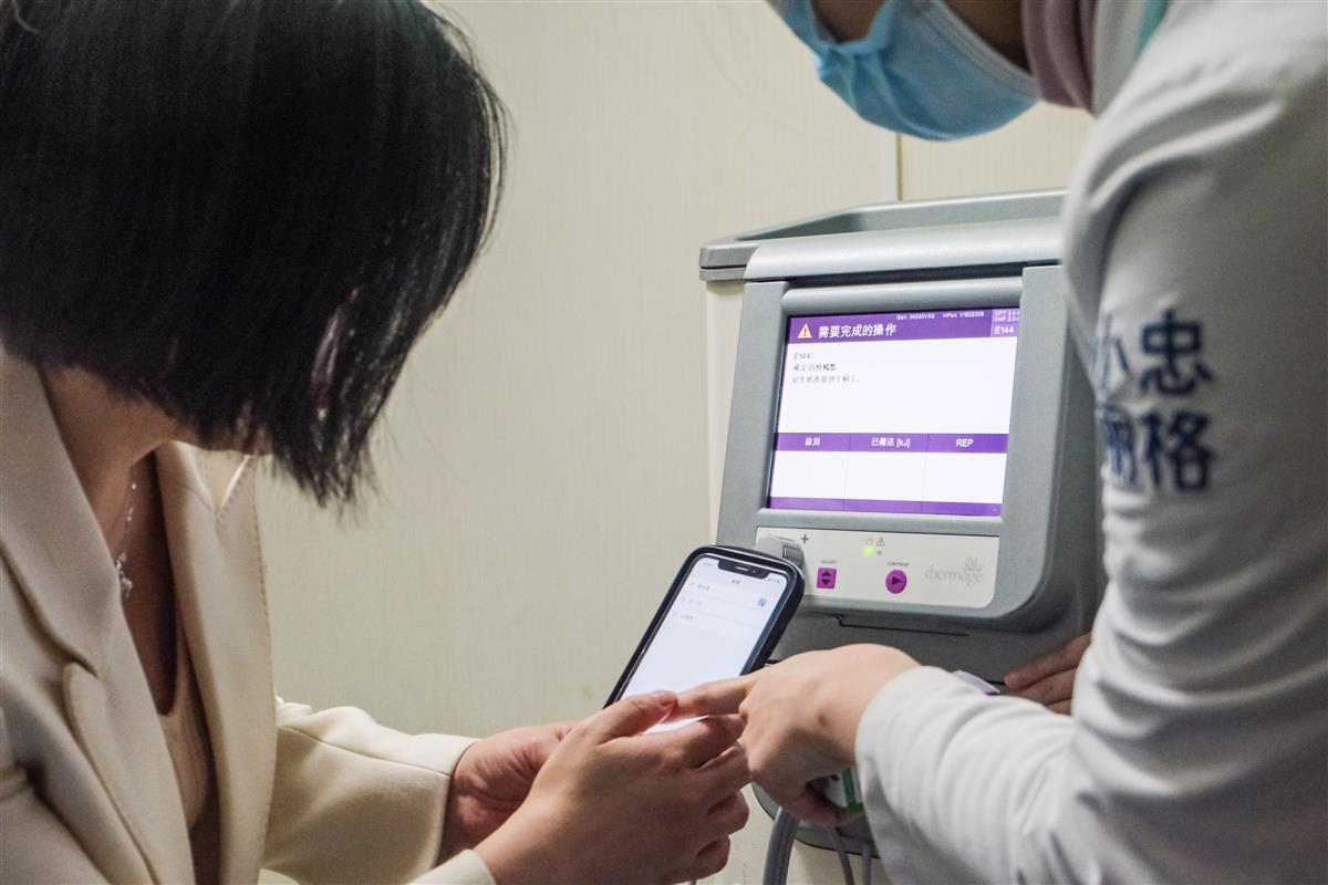 3月28日下午3时许,极目新闻记者来到武汉小忠丽格医疗美容门诊部看到,一位正准备做热玛吉的项目的患者张雯和该院的叶贵芬医生正在沟通注意事项,在叶医生的指引下,张雯拿出手机,先打开Thermage Beauty官方微信公众号,再逐项点击扫描机器码、美容头端码等,每一项的查验结果出来后,她都仔细对照,确保是正品。