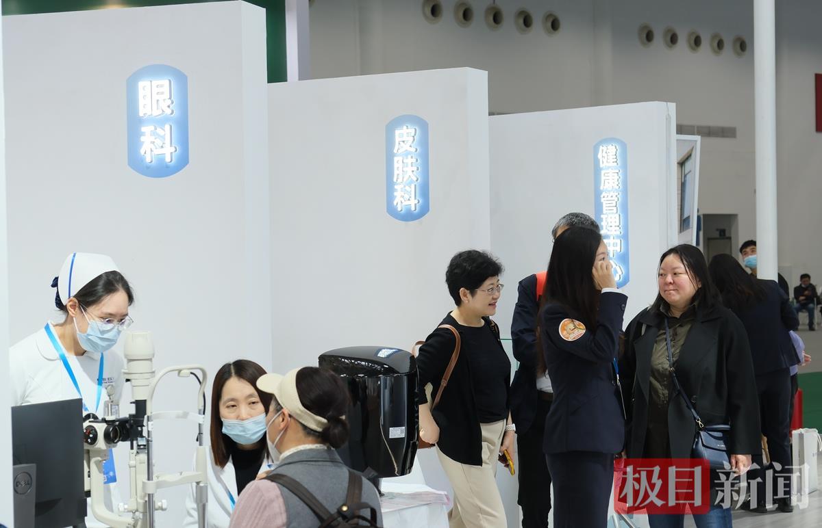 展厅内人头攒动,极目新闻记者现场看到VISIA皮肤检测仪、裂隙灯等特色体验项目,参观者们饶有兴致地积极参与,亲身体验。