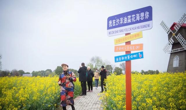 游客在沙洋县油菜花旅游节核心景区内赏花。新华社记者伍志尊摄