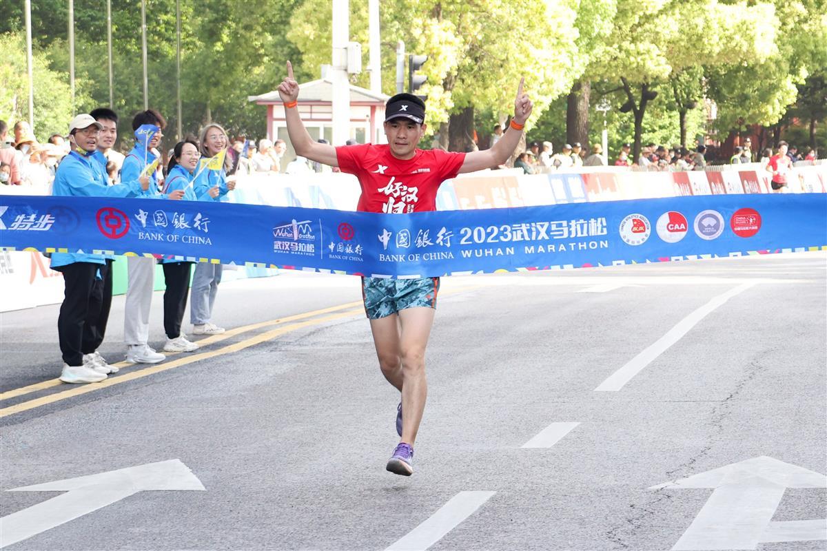 马拉松健康跑选手撞线(王晨曦摄)