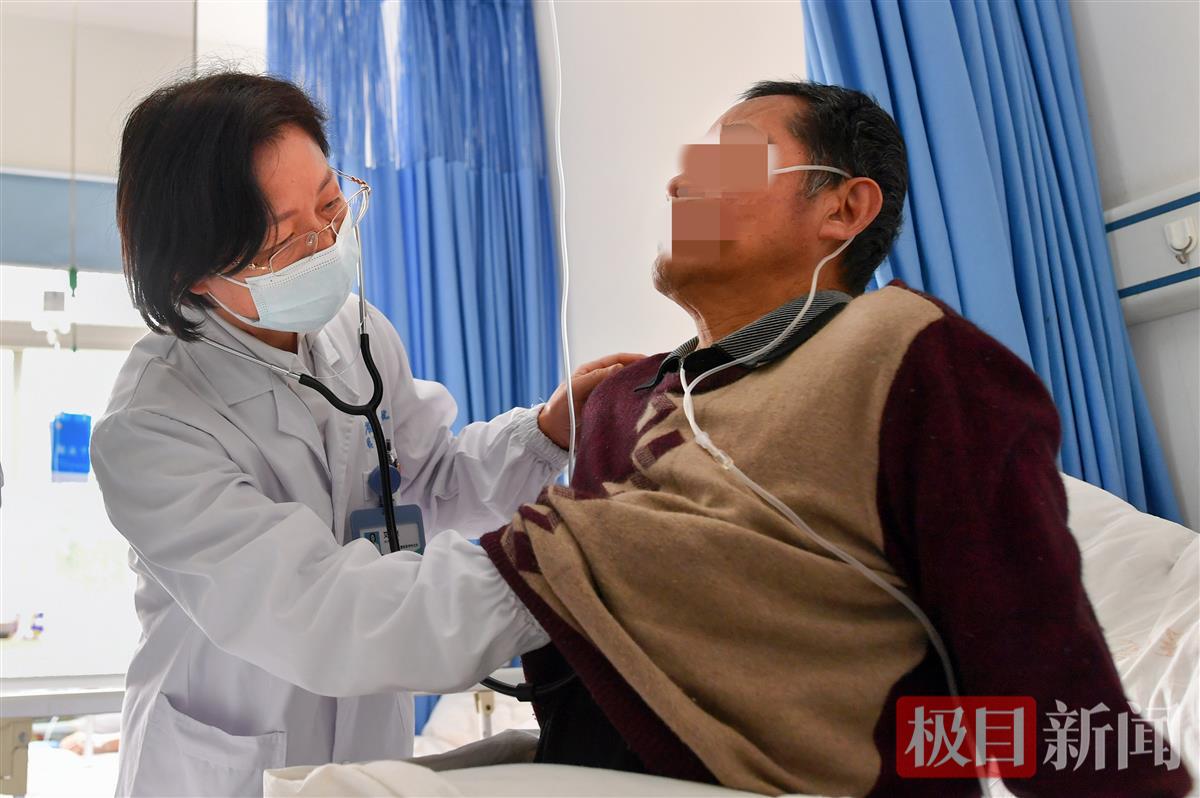 查房的第一位患者,恰巧是艾红艳的“老熟人”,71岁的汪爹爹(化姓)患慢阻肺多年,这次急性发作,导致了Ⅱ型呼吸衰竭,险些昏迷。“您怎么搞的,又复发了啊。”一进病房,艾红艳就认出老人,热情地跟他打招呼。汪爹爹见到艾红艳,也是一脸惊喜。